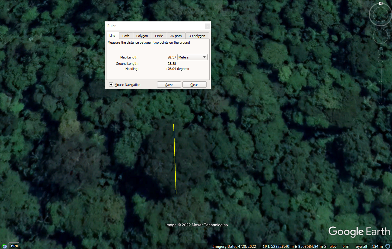 Fuente: Google earth, Norte de La Paz – Bolivia, Medición de la copa de un árbol